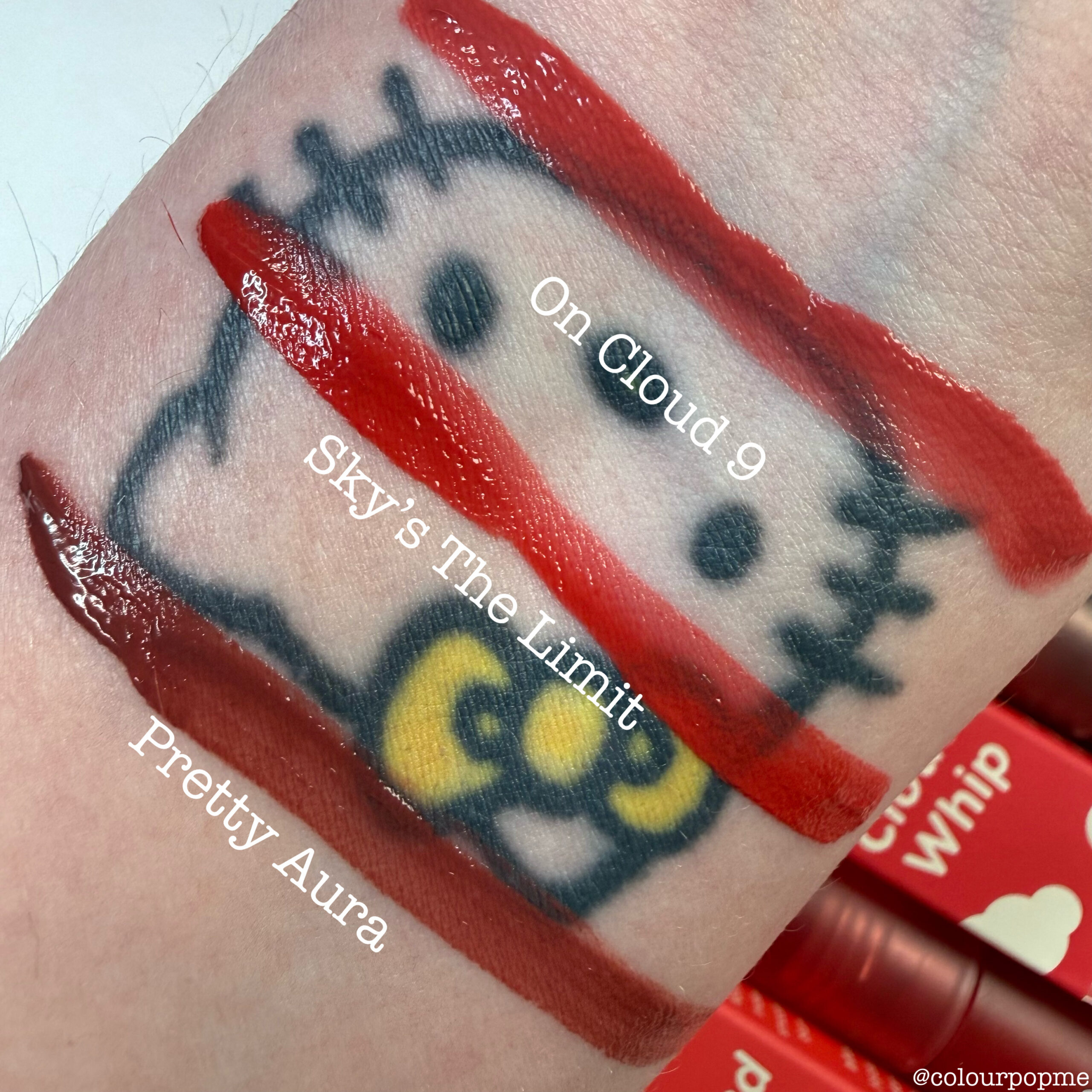 NEW Colourpop Cloud Whip Blurring Liquid Lipstick swatches - On Cloud 9, Sky's The Limit, Pretty Aura